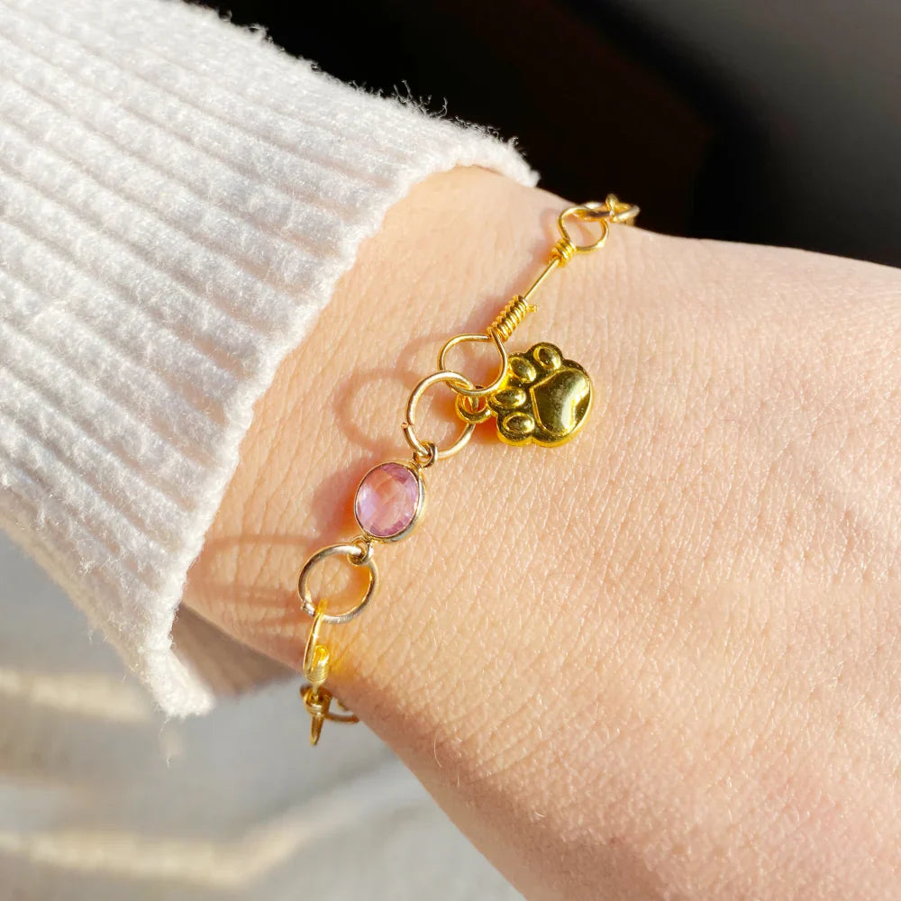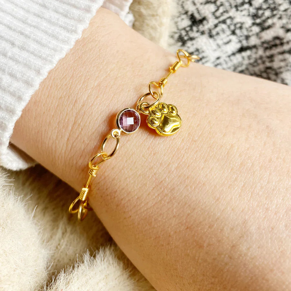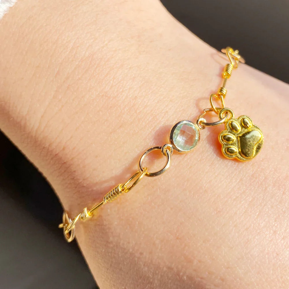 Gold Paw Birthstone Bracelets