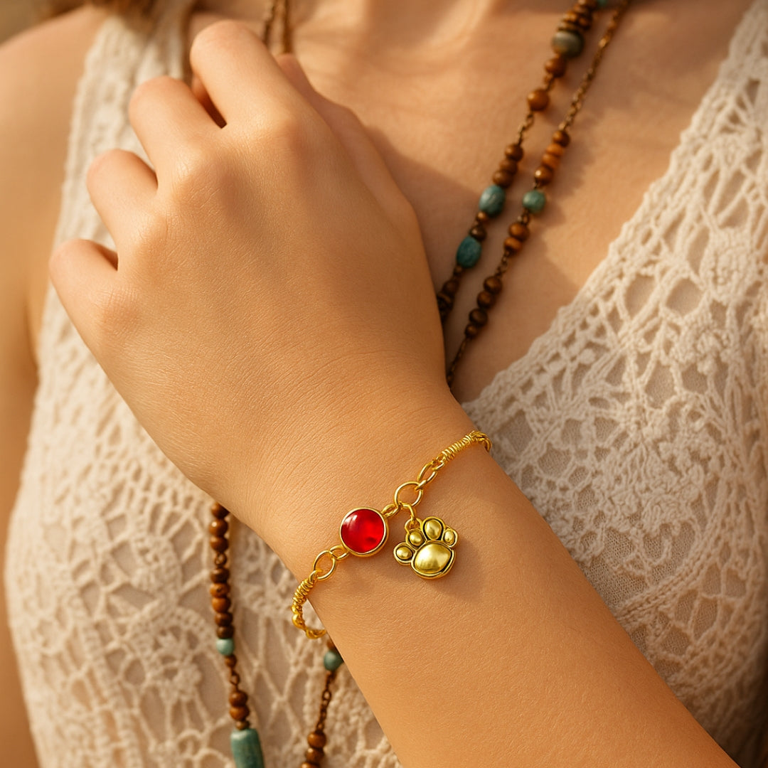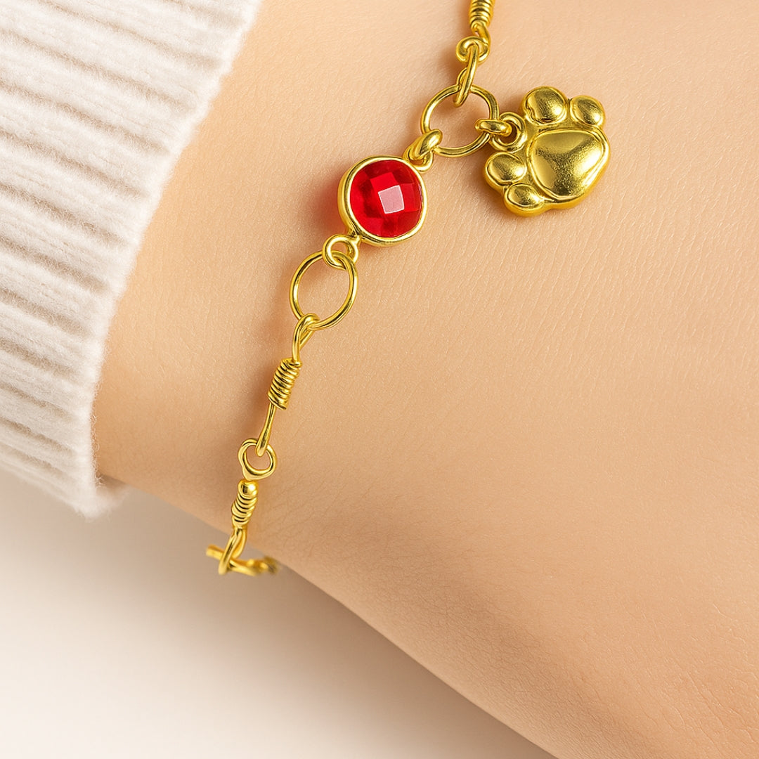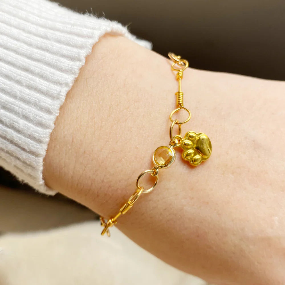 Gold Paw Birthstone Bracelets
