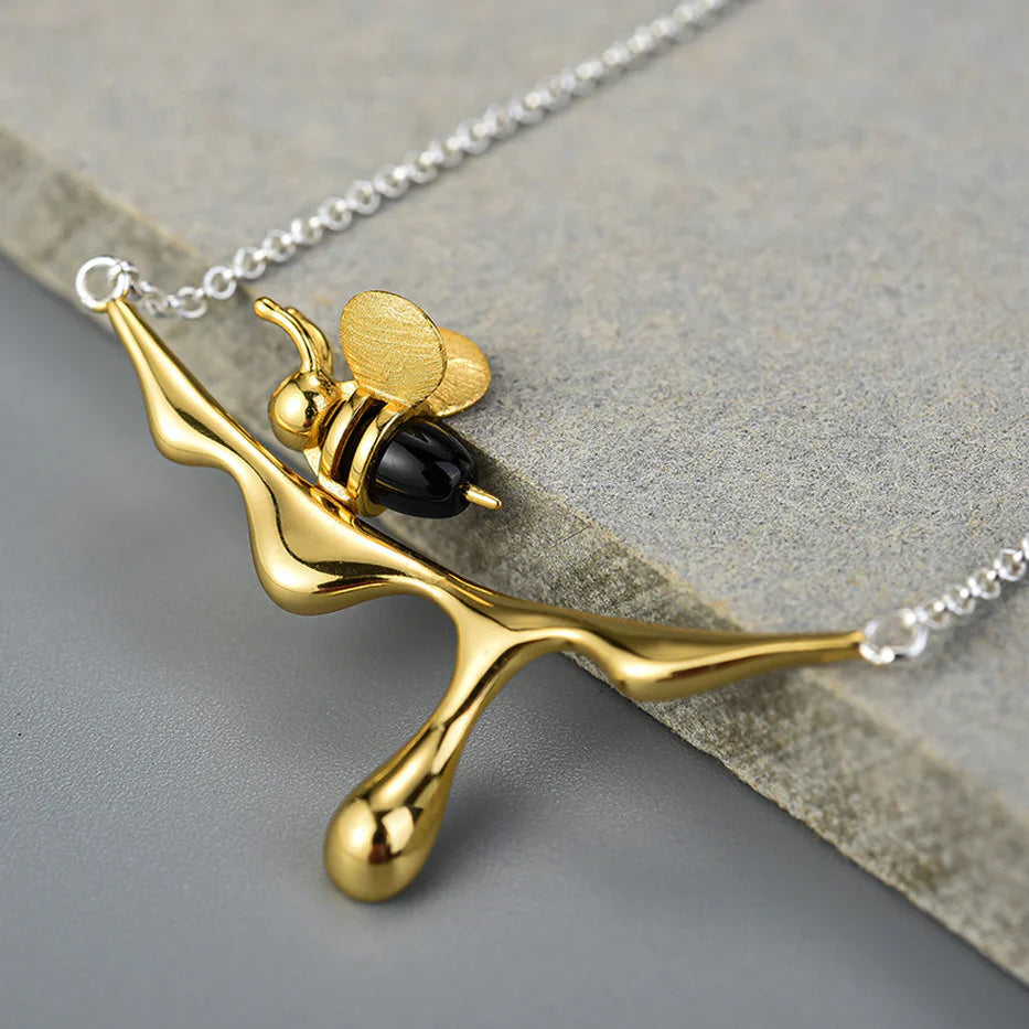 Gold & Silver Bee and Honey Necklcae