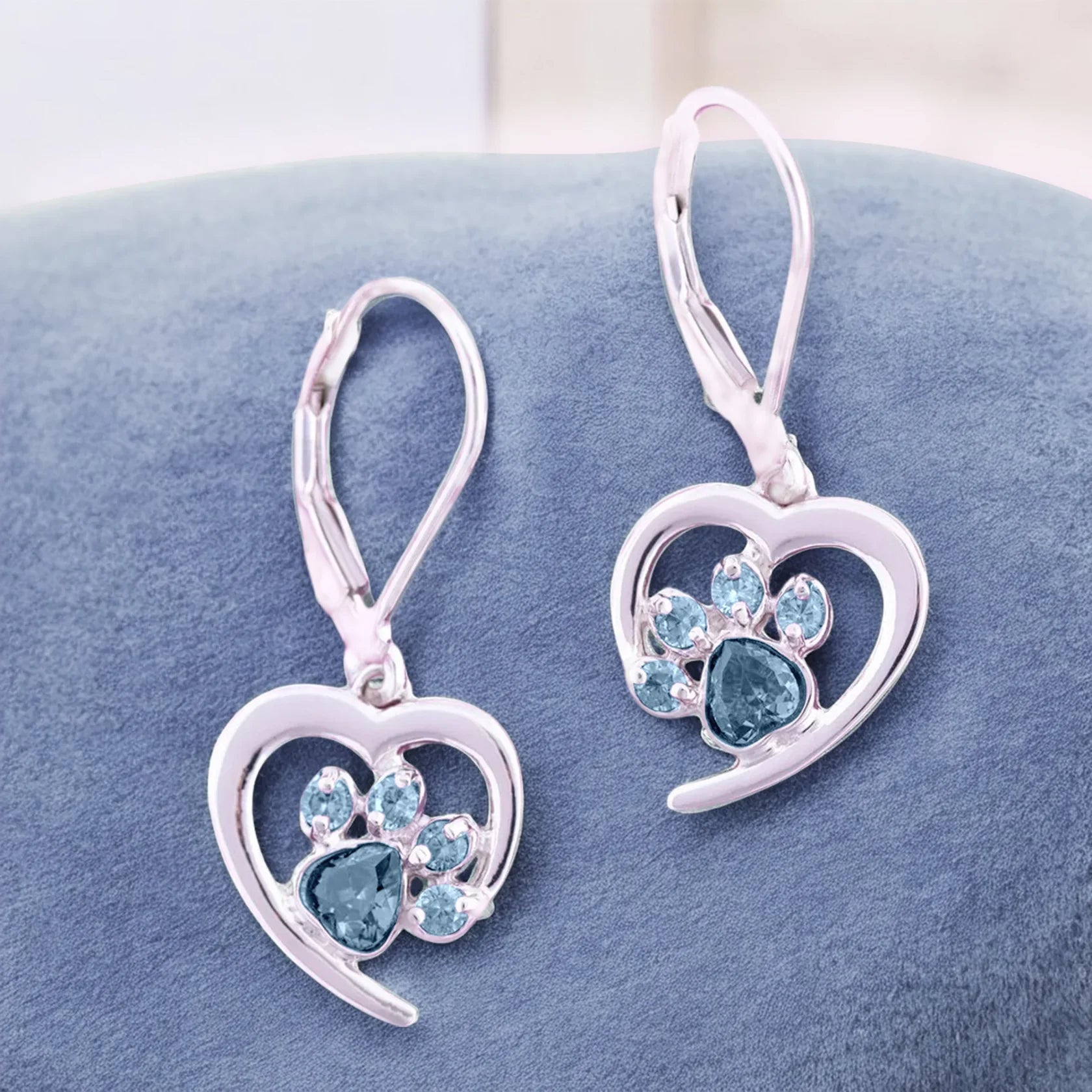 Heart Paw Birthstone Earrings